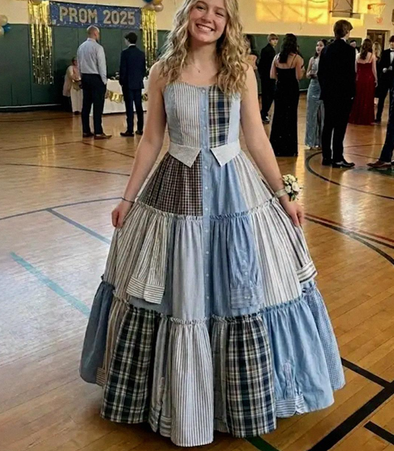 Cosí un vestido con las camisas de mi papá para el baile de graduación en su honor. Mis compañeros de clase se rieron hasta que el director tomó el micrófono y la sala se quedó en silencio.