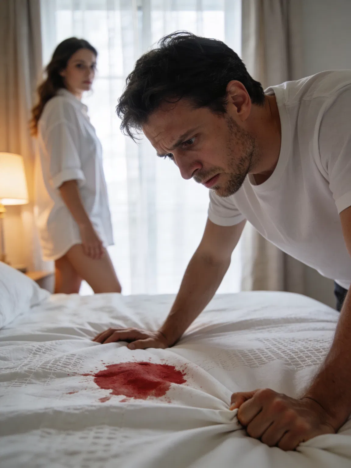 Entonces me levanté de la cama y me quedé paralizado al ver la mancha roja en la sábana, no era grande pero sí lo suficiente como para que se me helara todo el cuerpo.